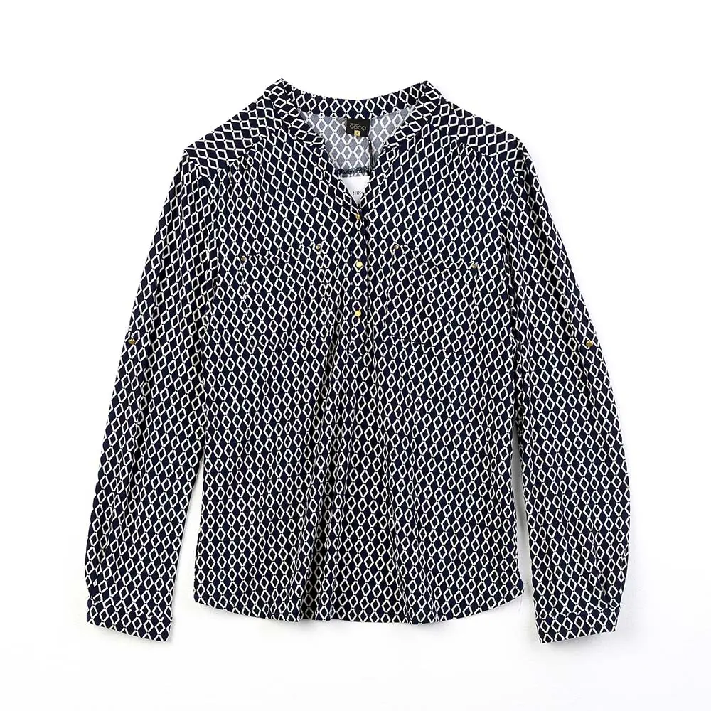 This is a women’s round-neck long-sleeved blouse.