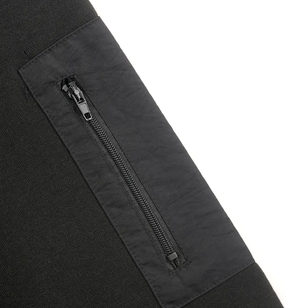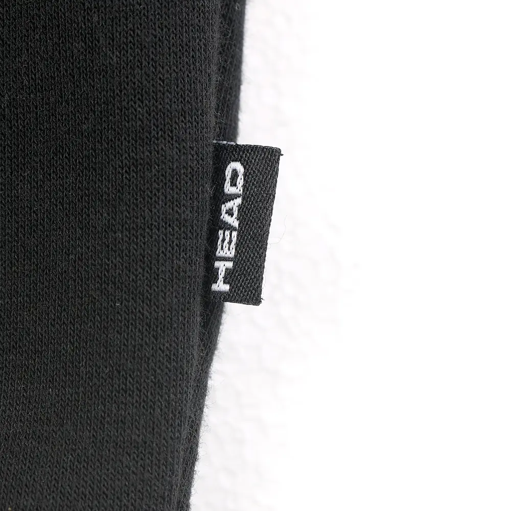This men’s sweater shirt is made of 80% cotton and 20% polyester, with a fleece fabric weight of around 280gsm. As a basic style from the sports brand Head, this sweater shirt features a classic and simple design, with a silicone logo print embellishing the left chest. Silicone printing material is considered an environmentally friendly choice as it is non-toxic and has excellent water resistance and durability. Even after multiple washes and prolonged use, the printed pattern remains clear and intact, without easily peeling or cracking. The silicone printing also provides a soft and delicate texture. The sleeves have contrasting color pockets on the sides, with metal zippers, adding a touch of fashion to the hoodie. The collar, cuffs, and hem of the garment are made of ribbed material, providing good elasticity for a nice fit and easy wearing and movement. The overall stitching of the garment is even, natural, and flat, highlighting the details and quality of the sweater shirt.
