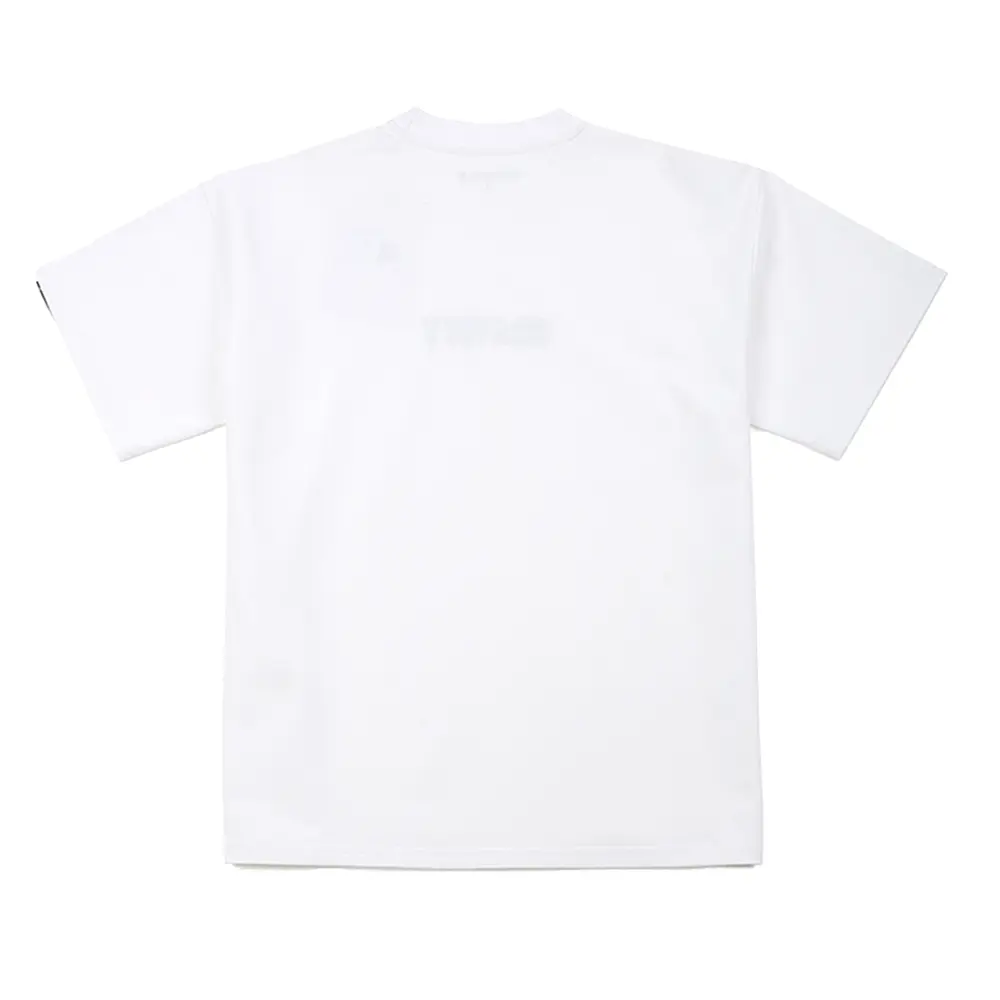 The chest area of the T-shirt features a simple embroidery design. Combined with the oversized drop shoulder design, the embroidery adds a touch of style to the garment, creating a fashionable yet minimalist look. It perfectly balances sophistication and simplicity.