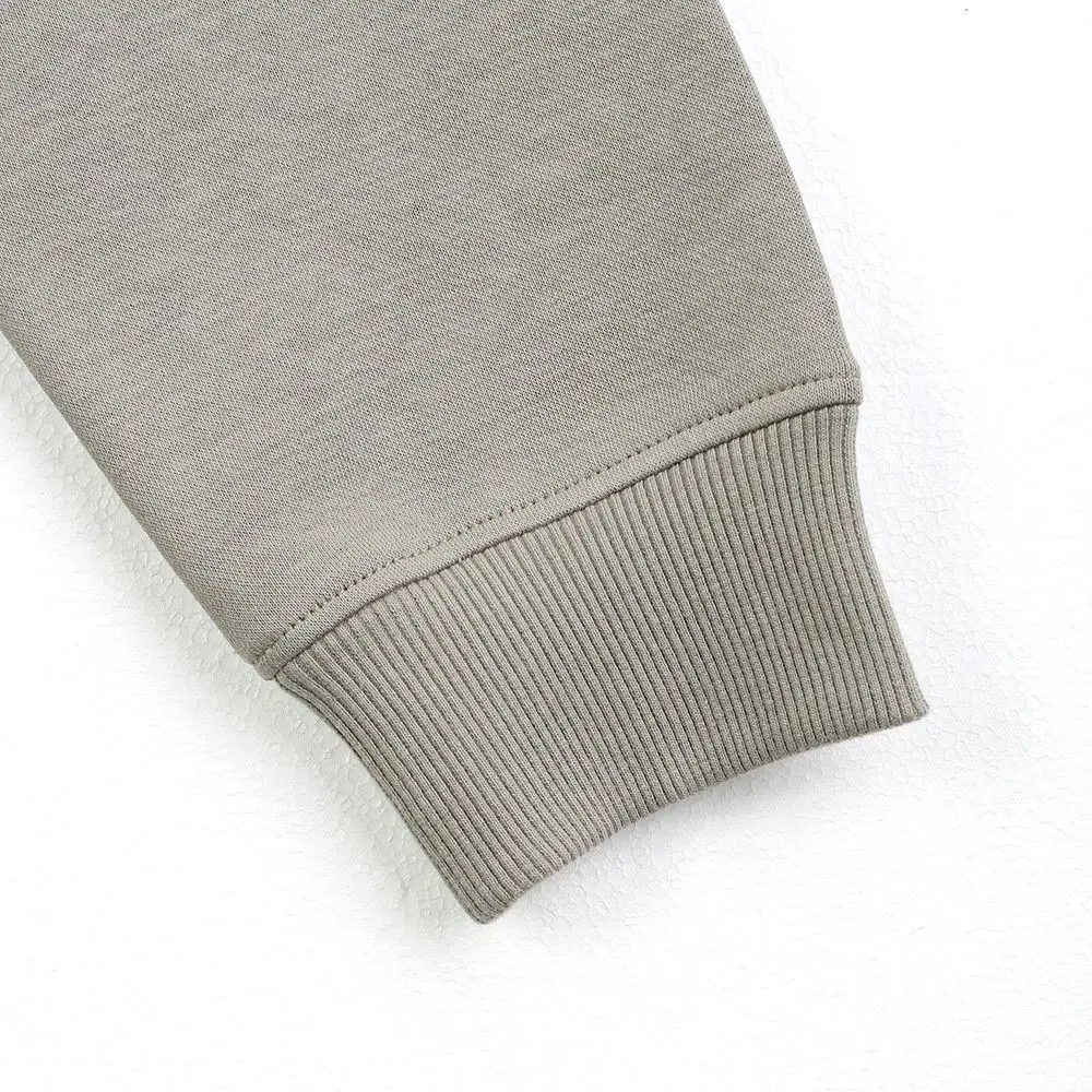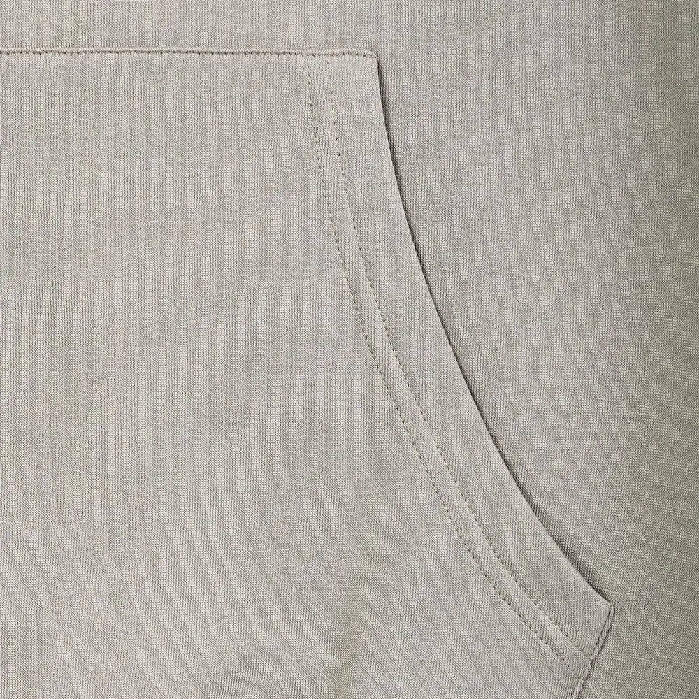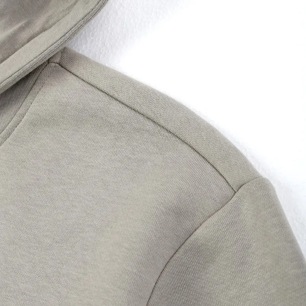 This men’s hoodie is made of 60% cotton and 40% polyester 280gsm fleece fabric. The surface of the fleece is made of 100% cotton and has undergone dehairing treatment, making it smooth and resistant to pilling. At the same time, the polyester component at the bottom of the fabric enhances the plush texture, giving the fabric a thick and fluffy feel. The overall design style of the garment is simple and generous, without excessive decoration, with a loose fit. It features a hood design with a double-layer fabric for added comfort, both for styling and warmth. The front chest print uses transfer thick plate silicone gel material, which has a soft and smooth texture. The garment has a large kangaroo pocket design, which adds to the aesthetics and provides convenience for storage. The overall stitching of the garment is neat without any excess threads, ensuring the quality of the garment. The cuffs and hem are designed with ribbing, providing good elasticity and a nice fit. We can support various colors and fabric customization according to customer requirements, with a very friendly minimum order quantity.